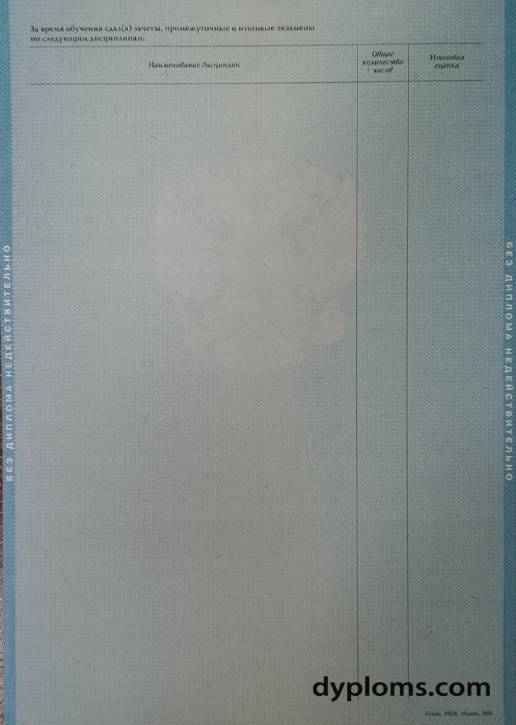 - Диплом актуального образца с государственными символами и защитными элементами.
